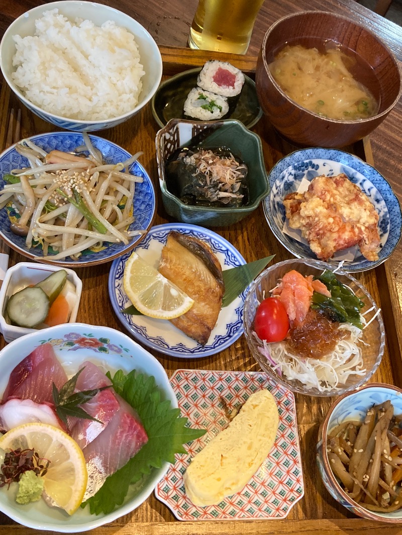 昨夜同様、ムスメが予約しておいてくれた和食の店で昼食を堪能( ´▽`)昼から飲むビールの美味いコトったらないでごんす。