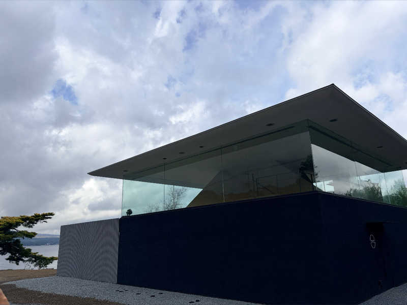 とんでもなくデカい(2m×1.8m)薪ストーブに大量のストーンが積まれ、サウナ室の内装も工夫が凝らされている。熱さを感じながら上まで登ると天井がガラス張りになっている特等席が!昇天しました。