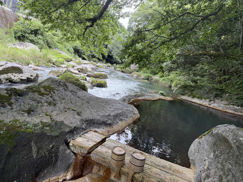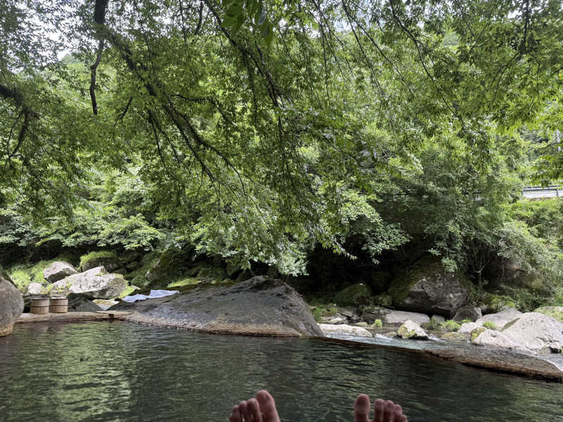 おまけに、一旦洋服きて少し外を移動すると目の前に川がある超開放的な露天風呂が😳