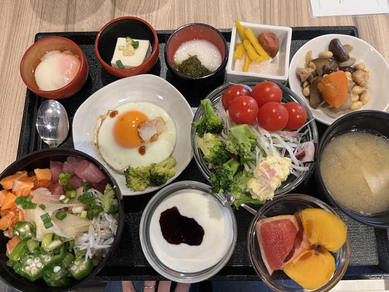 サウナ:12分 × 3 水風呂:1分半 × 3 休憩:10分 × 3 合計:3セット 一言: 朝サウナ。ロウリュの熱気で少しずつ身体を起こす。 徐々に明るくなる空が気持ちよい。 朝ごはんも食べてお腹いっぱい。