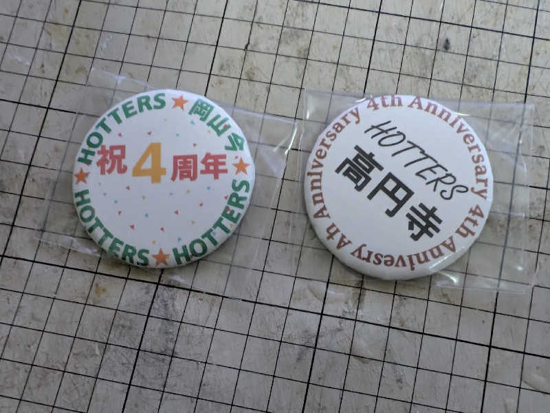 今年のホッターズ 4 周年記念のバッジを制作して店長にお渡ししたところ