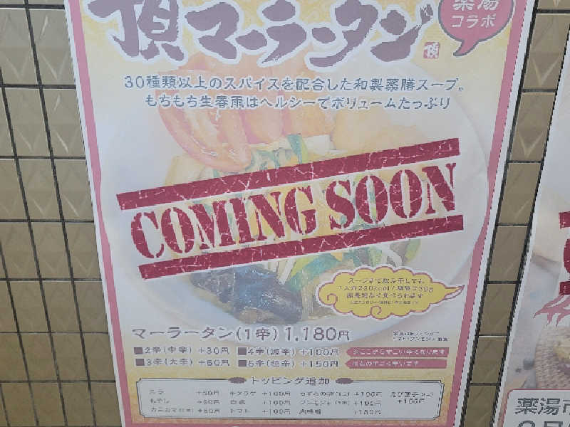 明日まで限定のマーラータン水風呂に入りたくて来ました…いつもより水風呂の温度高めでしたがスパイスの香りとともにゆっくり水風呂堪能🚰サ飯も頂マーラータンいただきました🍜