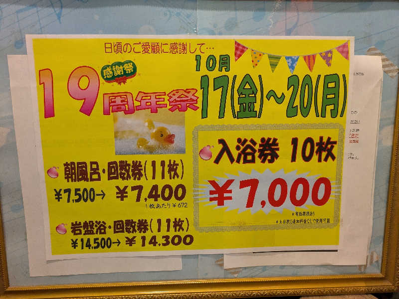 シャイなのか無愛想なのかわからないフロントのおじさまに湯めパスを出して、キョロキョロしながら階段上がって大浴場へ。