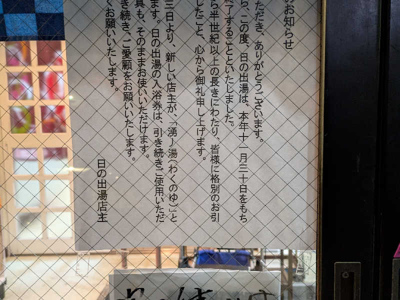閉店継業のごあいさつに「風呂道具も置いたままで構わない」的なことを書いてあったので、なんかほっこり。