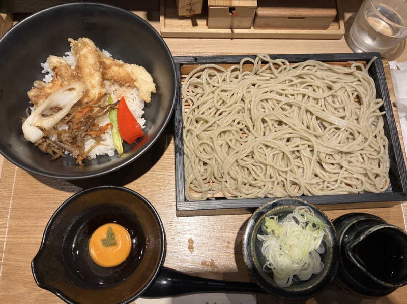 蕎麦は香りとコシがあり、かしわ天もサクッと揚がって美味い🤤
