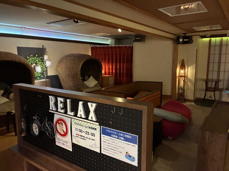 脱衣所のフロアにTV付きリクライニングたくさんのエリア。コワーキングも。四階は男女一緒のリクライニングエリアも。名古屋は食べたいとこが多すぎだけど、ここでも食べたいな。