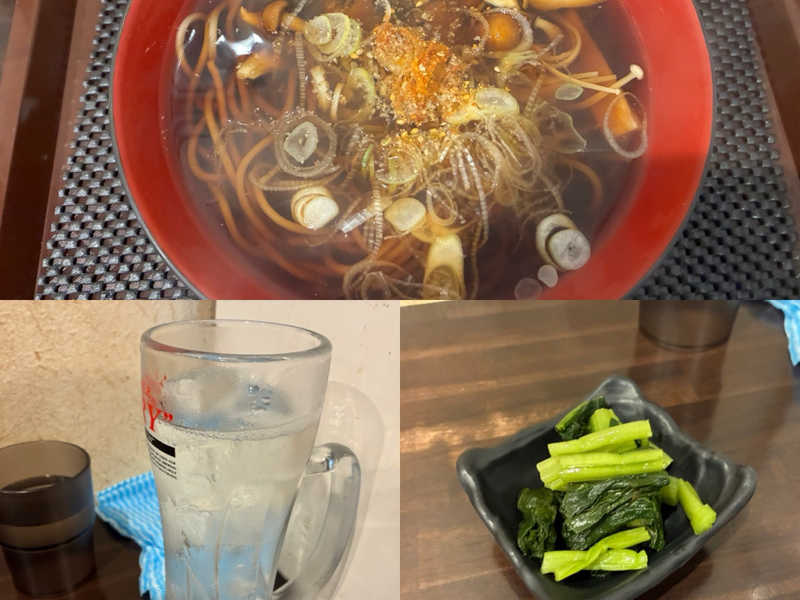 館内は省エネで電気消えてるとこたくさんだし、浴場含めて故障中の貼紙たくさん見かけるし、でもここの温泉はすっごくいい。年季入ったサウナも芳ばしいけどがっつりいい汗かける。そして冷泉の水風呂。露天にはたくさんの椅子もあって何しろ空の見え方がいい。