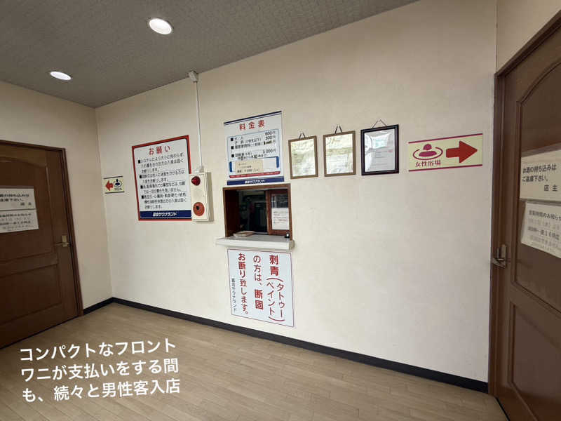 支払いは現金のみでタオルセット付600円、脱衣所ロッカーキーを頂き、脱衣所へ