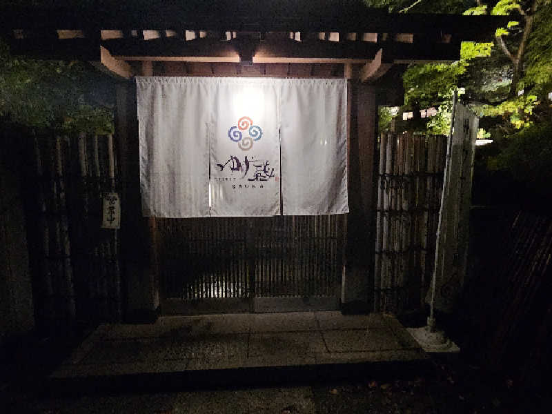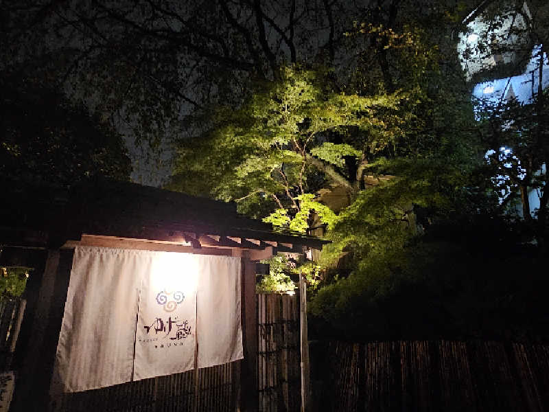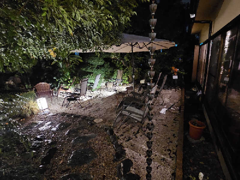 料亭を改装したとあって門構えから玄関までの庭が雅。ポンチョを借りるとこの庭で外気浴できるらしい。