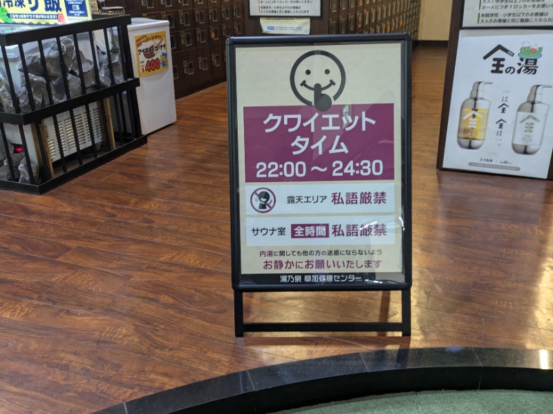 だいぶご無沙汰半年ぶり?今日も最高のサ室コンディションでした、薬湯も気持ちよくて6回位ループ。今日のロウリュになにも文句ないんだけど、SSKさんのロウリュ受けたいなあ。木曜じゃなくなったのかな?曜日変えてまた来ます。それからサイレントタイムの黙浴エリア変わりましたね。今日は守られてたので快適で良かったです!