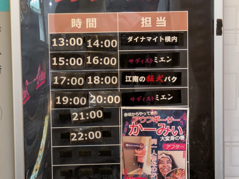 ちゃんとしたアウフグースサービスやってて一安心!!☺️ダブルガス遠赤を両サイドに従えサ室中央にストーン満載(に見えたんだけど、先月水かけすぎで壊れたらしい🤔)のロウリュ用ストーブ!広いので息苦しくなく、3段目座ってロウリュ浴びれば猛者の皆さんからも及第点頂けるかなと思います。今日はカズーヲさん担当の21時回を受けまして、15分弱、しっかり身体に熱入って満足です。ロウリュストーブ導入前はロウリュ点てずにブロワー使ってアウフグースごっこ(今だから敢えてこう書いちゃいます)してて、こりゃ誰にも勧められないし、変に噂になってもやだし、残念すぎて実はアウフイベントの日は来館避けてたんですが、もう大丈夫!また狙って来ようと思います。良かった良かった😌