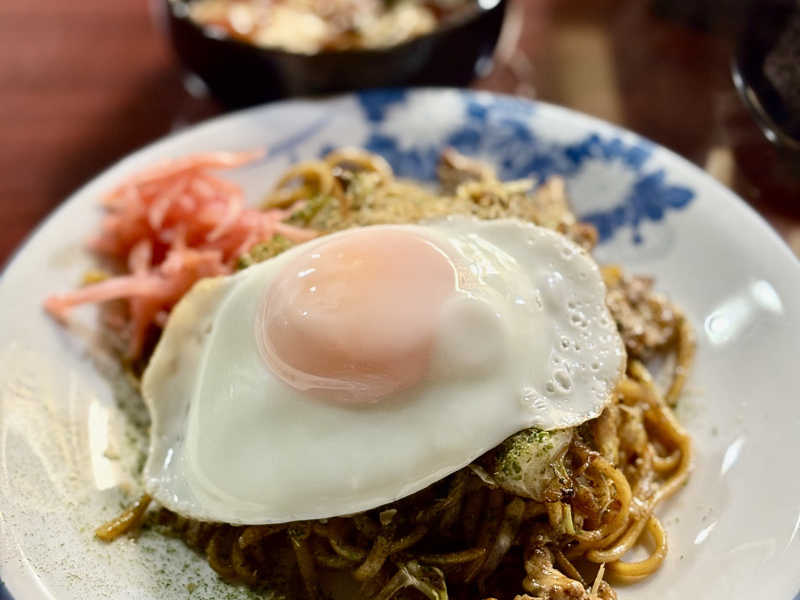 では露天エリアのサウナ行くかと勇んで出たらサ飯兄さんと嬉しい偶然🤝チェアーに座り近隣のサ飯トークを交わしてから共にサ室へGO🧖♂️🧖♂️ストーブ前のヒリヒリ席で他に人もいないためしっぽりトークしながら蒸される。ここのサウナはストーブ正面は昭和ストロング系で短時間ガッツリ系を楽しめ、ストーブ側面は輻射熱のマロい心地よさでまったり楽しめる二面性があるんよ〜常連やで知っとるんよ!