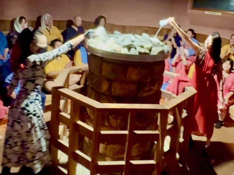 クリスマスも近いからお昼12時半〜18時半までラドン泉で蒸気浴しながら寝落ち込み長丁場の湯治♨️合間に13時真炎さんと17時真炎さん&熱波姉妹イベントを受けました☺️