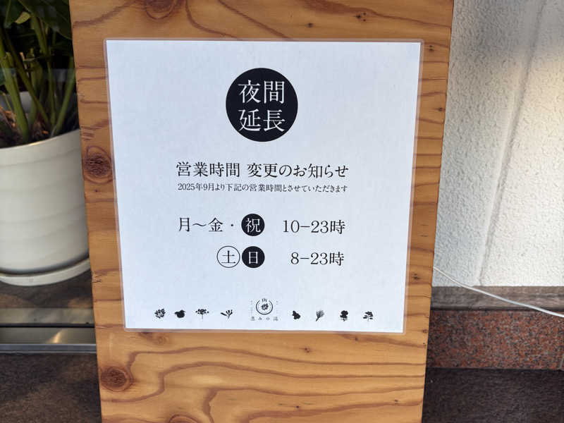 会社サボって来たことだけはショナイですよ🤫だけど悪いことするもんじゃないっすね!8時オープンと勘違いして駐車場空いてるな〜と思い9時に来たら平日は10時オープンでしたわ💦でもアタイ1時間待つわ‼️恵みの湯29年の常連暦初のイチバンサウナを狙ってやるんよ〜🧖♂️ちなみに創業当時は8時〜24時営業だったんよ〜今思えばありがたかった✨