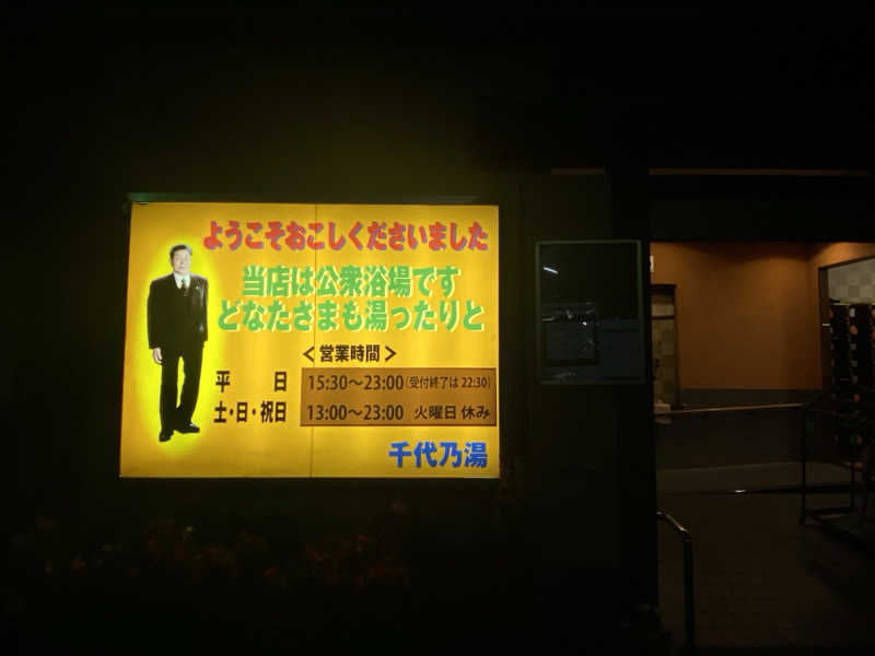 台風がサッサと通り過ぎ、月の澄み渡るすばらしい夜となったのでずっと来たかった千代野湯さんへ。