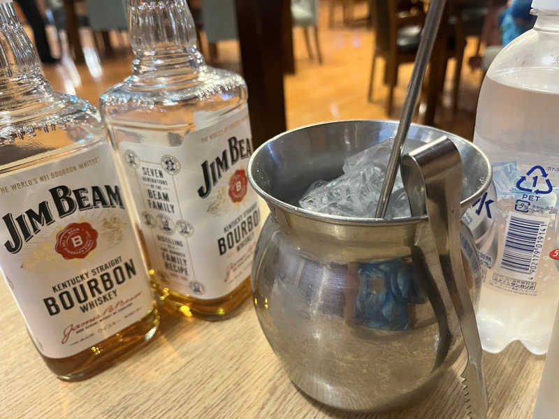 なごみ亭で腹ごしらえしようとしたら、ジムビームのボトル2本あるよって持ってきてもらいました。