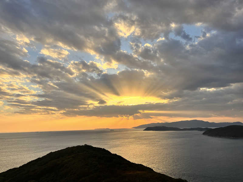 露天の寝椅子が外気浴に最高。沈む夕日を見ながらうとうと。