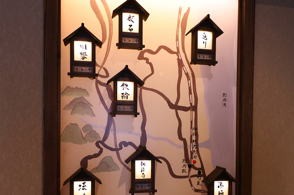 また、当館の自慢は、最上階の大浴場に加え、各温泉郷をイメージした7つの貸切風呂で「別府八湯」を湯めぐりいただけることです。貸切風呂はご滞在中、何度でも無料でご利用いただけます。