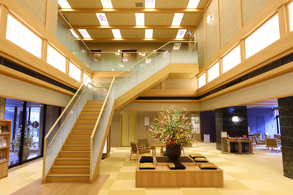 内湯では、当館イチオシの自家源泉「松江堀川温泉」にて身体をあたため、水面に反射した光が天井にゆらぎを見ながらごゆっくりお過ごしください。
