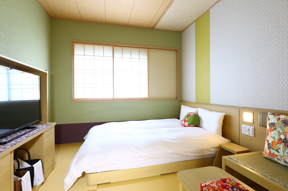 シンプルながらも快適性を追求した客室は、おひとり様からファミリーまで幅広く対応。全室にWi-Fi・加湿機能付き空気清浄機を完備、ビジネスでも観光でも心地よくお過ごしいただけます。サウナ後は、やわらかな寝具でぐっすりとおやすみください。