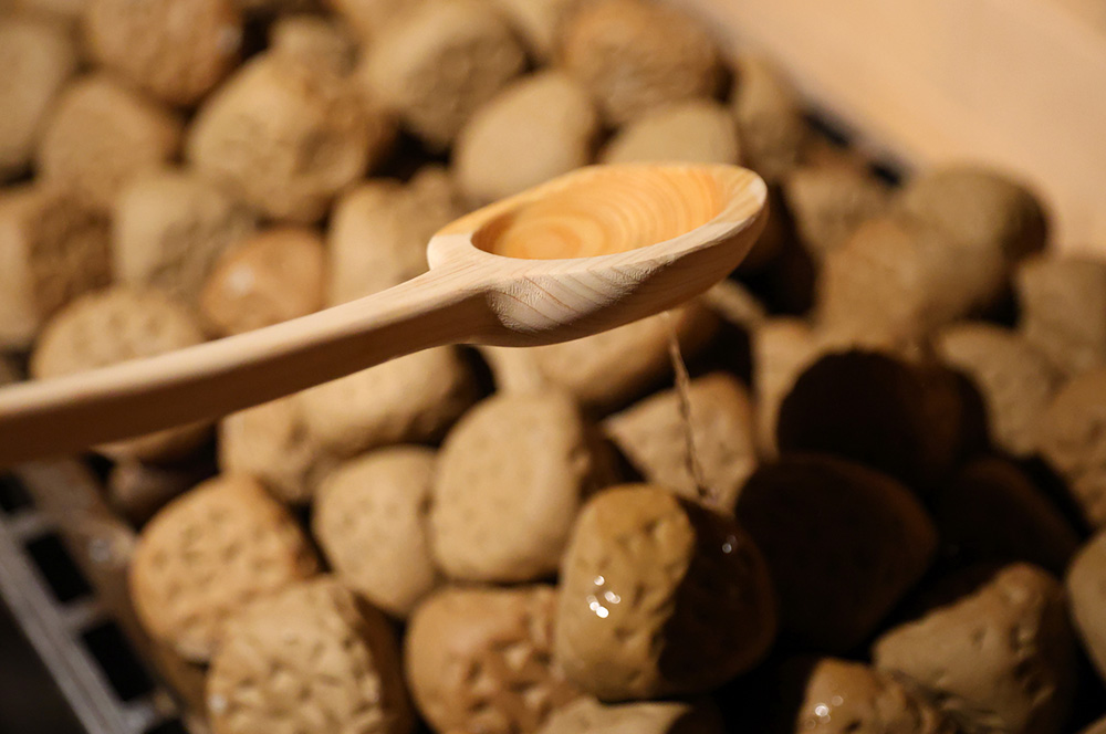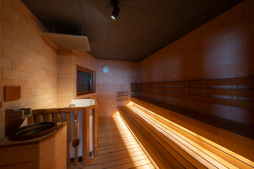 最上階11Fにある男女別天然温泉大浴場「だんだんの湯」では、男女ともにセルフロウリュ付きの高温ドライサウナ完備しており、アロマ水をサウナストーンへ…しっかりとした蒸気とともにふわっと香るアロマがゆっくりと“ととのい”へといざないます。